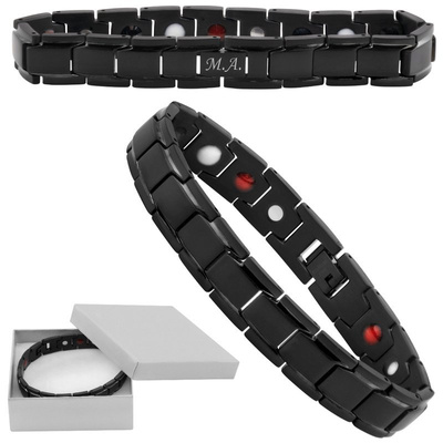Bransoletka męska 316L czarne panele, prezent z grawerem na walentynki