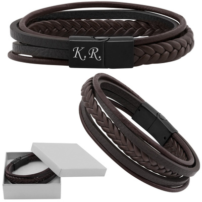 Brązowa bransoletka męska z ekoskóry z grawerem laserowym