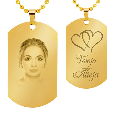 Nieśmiertelnik koloru złotego ze stali z grawerem diamentem