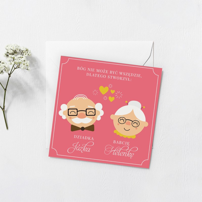 Kartka dla babci i dziadka / Bóg nie może być wszędzie / Prezent na Dzień Babci i Dziadka