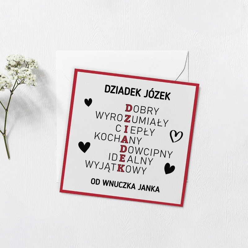 Kartka dla dziadka / Krzyżówka / Prezent na Dzień Dziadka