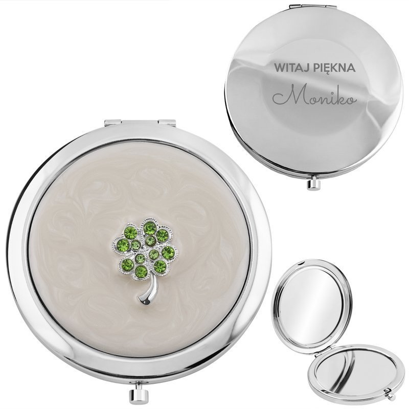 Lusterko koniczynka z cyrkoniami z Grawerem