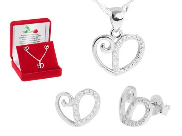 Srebrny komplet z cyrkoniami pr. 925 kolczyki i wisiorek Serduszka PREZENT