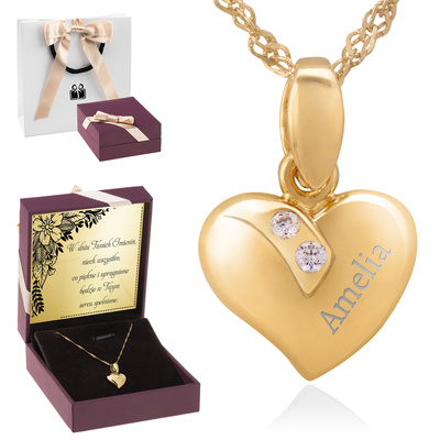 Wisiorek srebrny serce pozłacane złotem pr. 925 – z możliwością grawerunku i eleganckim opakowaniem