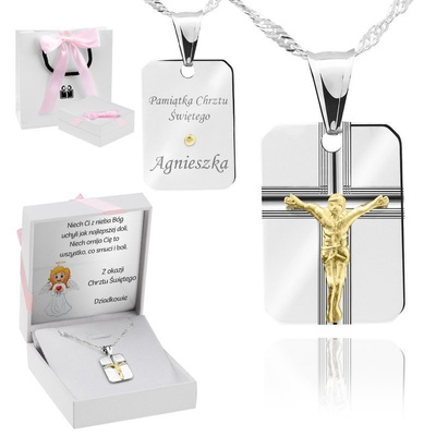 Srebrny duży krzyżyk z Jezusem / na I Komunię Św. / Chrzest Św. / pr. 925 / z Grawerem
