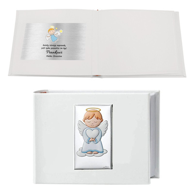 Obrazek posrebrzany /Obrazek Aniołek Na Białym Panelu/ Pamiątka Chrztu Św./Grawer/9x12cm