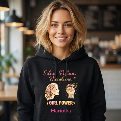 Czarna bluza z kapturem Girl Power – personalizowana z imieniem