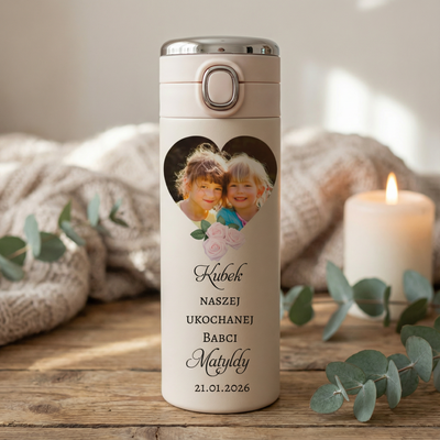 Personalizowany kubek termiczny ze zdjęciem – „Kubek naszej ukochanej Babci ...”