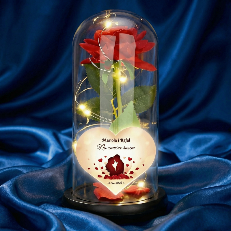 Wieczna róża w szkle LED z personalizacją – romantyczny prezent dla zakochanych