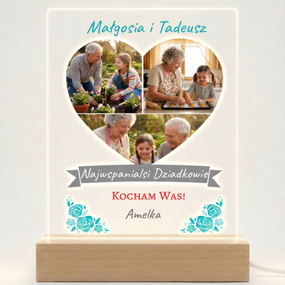 Personalizowana lampka LED „Najwspanialsi Dziadkowie” – ze zdjęciami i imieniem wnuczki/wnuka