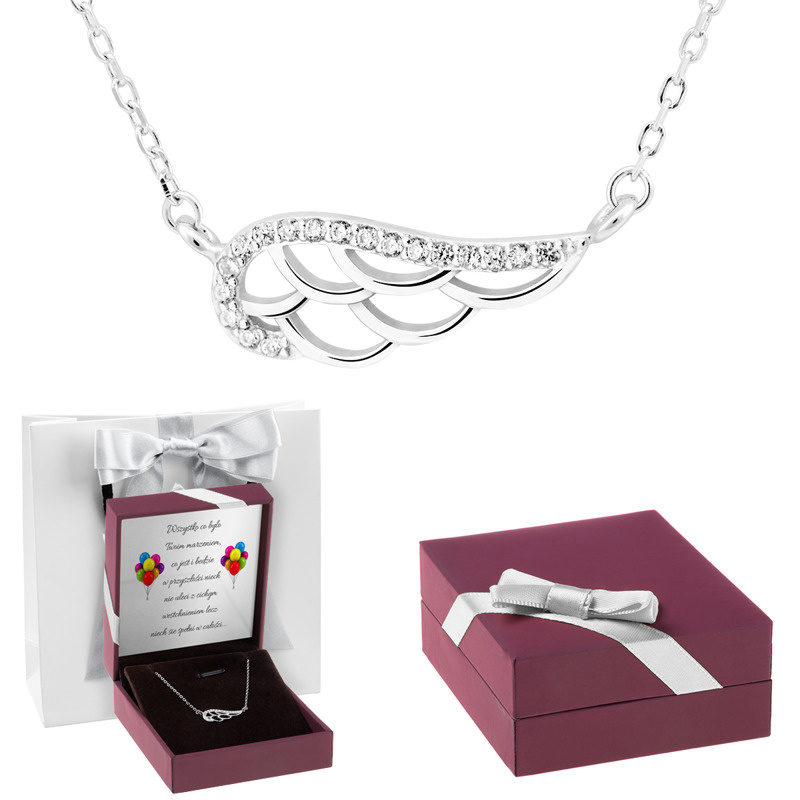 Srebrny naszyjnik skrzydło z cyrkoniami pr. 925 Dedykacja