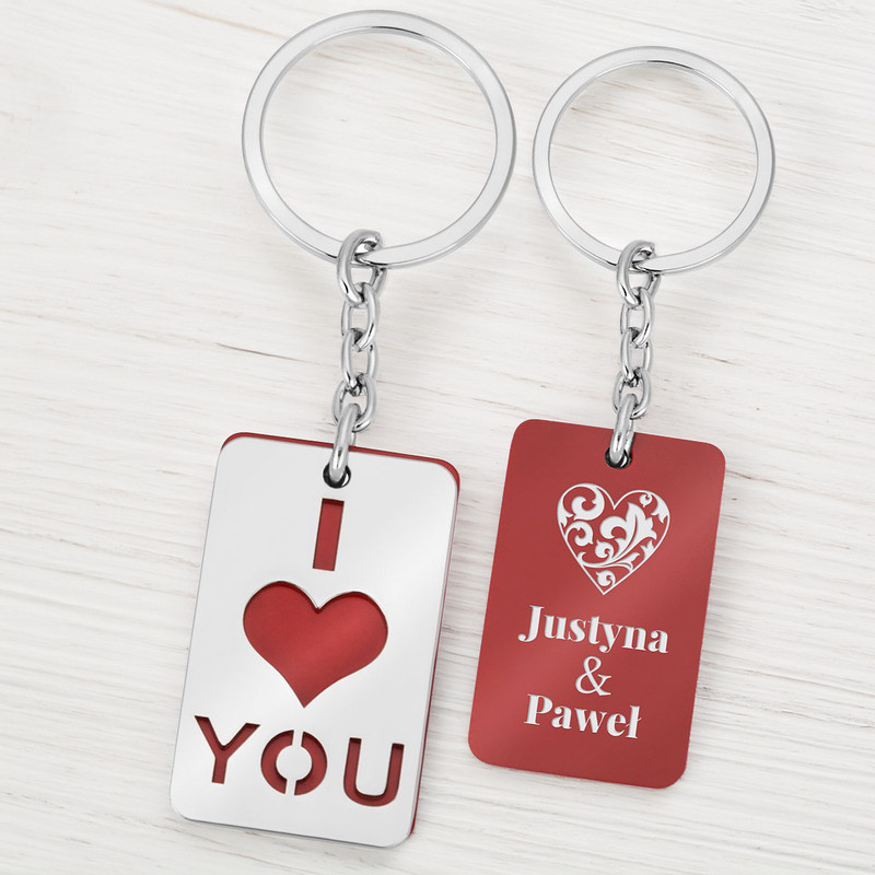 Walentynkowy brelok do kluczy I LOVE YOU z grawerem w czarnym pudełku