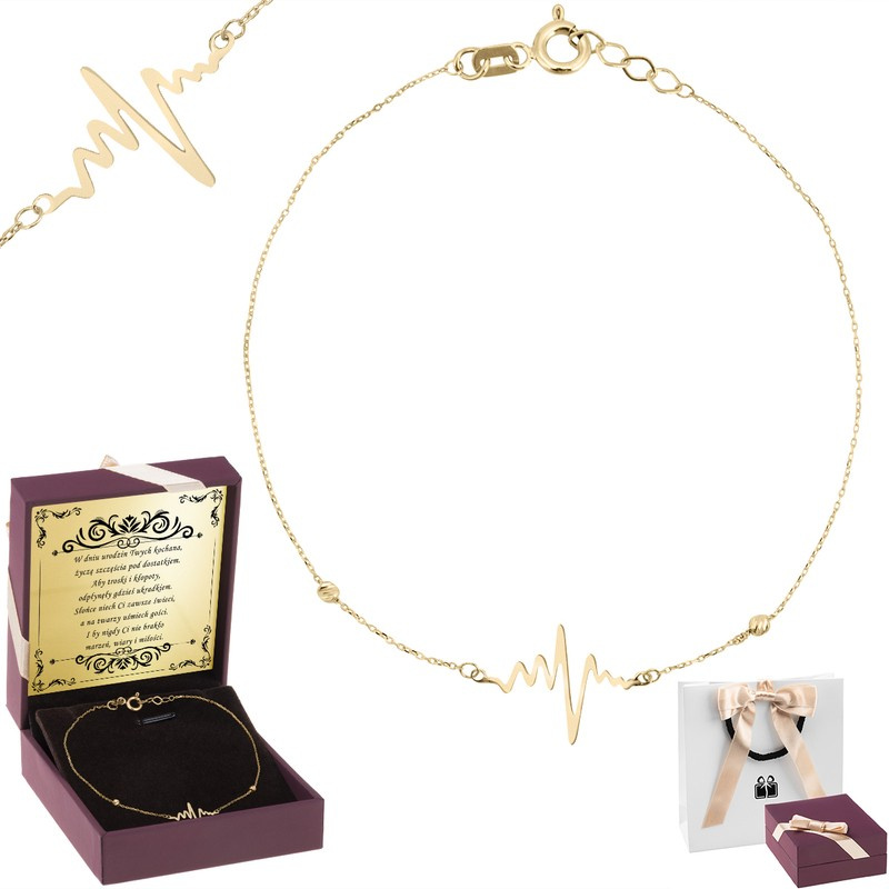 Złota bransoletka / pr. 585 / Dedykacja / Linia Życia / Prezent dla Dziewczyny / Pudełko + torebka