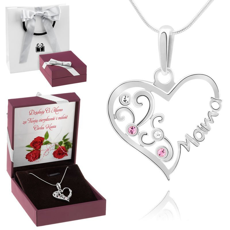 Naszyjnik serce srebro 925 z dedykacją w pudełku i tabliczką