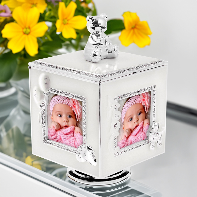 Karuzela miś z pozytywką, szkatułką i miejscem na 4 zdjęcia na chrzest roczek
