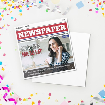 Kartka urodzinowa okładka gazety ze zdjęciem i życzeniami