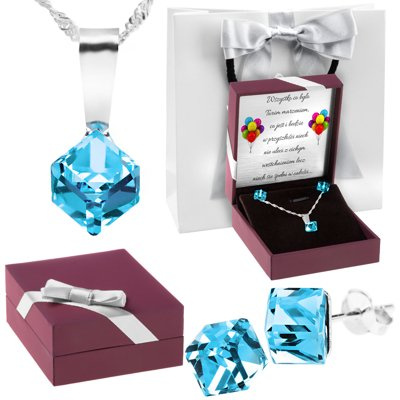 Srebrny komplet pr. 925 Błękitna kostka Dedykacja