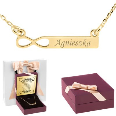 Srebrny pozłacany naszyjnik pr. 925 Nieskończoność z blaszką Grawer
