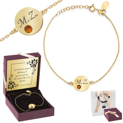 Bransoletka pozłacana z bursztynem 925 z grawerem inicjałów