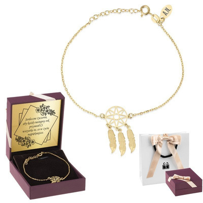 Na rocznicę pozłacana bransoletka Łapacz Snów 925 z dedykacją