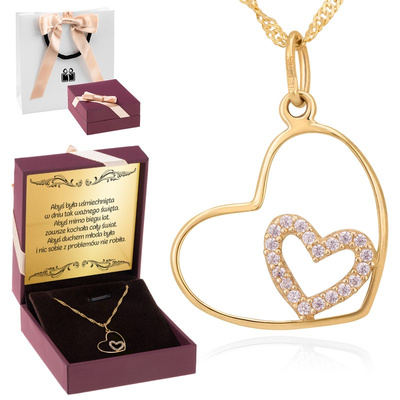 Srebrny Pozłacany Naszyjnik pr. 925 serduszko i blaszka Prezent Grawer