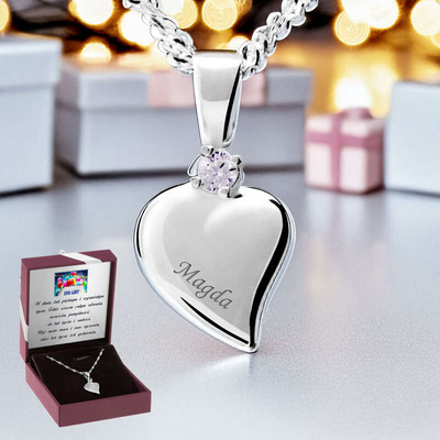 Srebrny naszyjnik serce z cyrkonią i grawerem – srebro próby 925 | personalizowana dedykacja + eleganckie pudełko