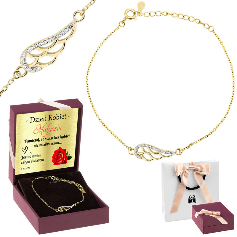 Prezentowa bransoletka skrzydło pozłacane srebro 925 z dedykacją