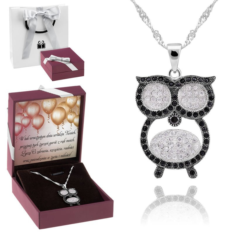 Srebrny wisiorek w kształcie sowy z cyrkoniami pr. 925 Prezent z Dedykacją