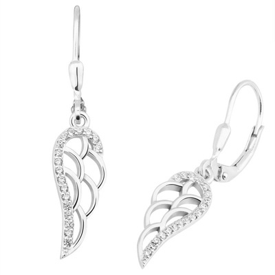 Na Bierzmowanie srebrne kolczyki skrzydło 925 z cyrkoniami bigiel