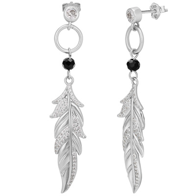 Srebrne kolczyki z piórkami i cyrkoniami na sztyft