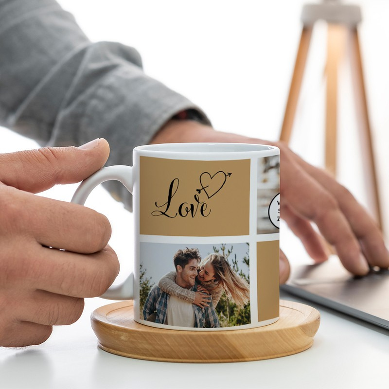 Walentynkowy kubek Cute & Love z 3 zdjęciami i nadrukiem