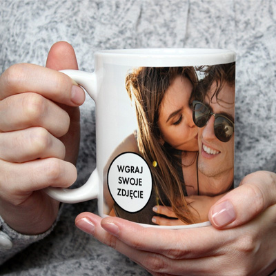 Walentynkowy kubek biały błyszczący ze zdjęciem w sercu, personalizowany