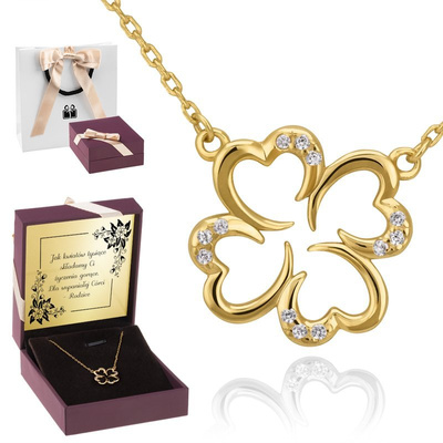 Pozłacany naszyjnik Koniczynka 925 z dedykacją na tabliczce