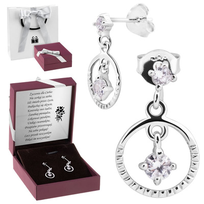Kolczyki srebrne 925 z zawieszką i cyrkonią z dedykacją