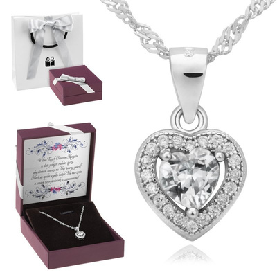 Wisiorek w kształcie serca z cyrkoniami pr. 333 z łańcuszkiem z Dedykacją