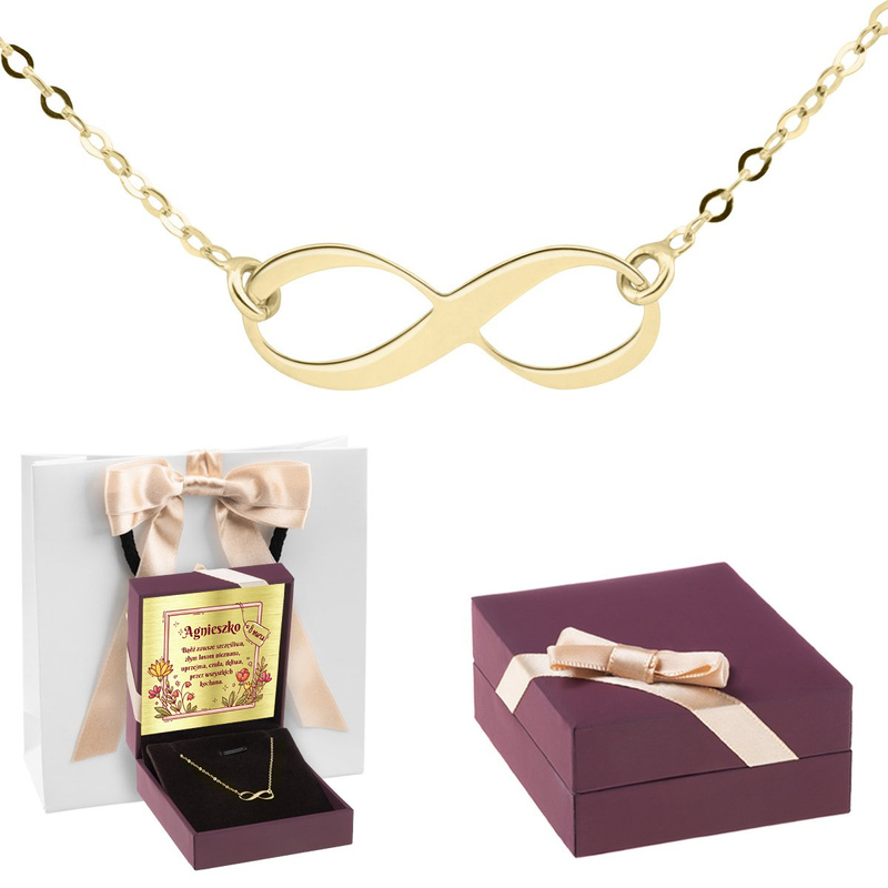 Bransoletka sznurkowa czarna nieskończoność złoto 585 z dedykacją