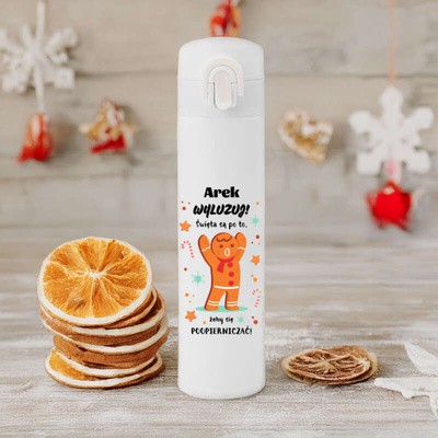 Personalizowana butelka termiczna 500 ml z nadrukiem UV – wyjątkowy prezent świąteczny dla kobiety