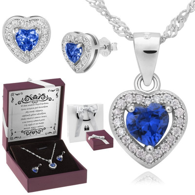 Komplet srebrny 925 kolczyki i wisiorek serca z dedykacją