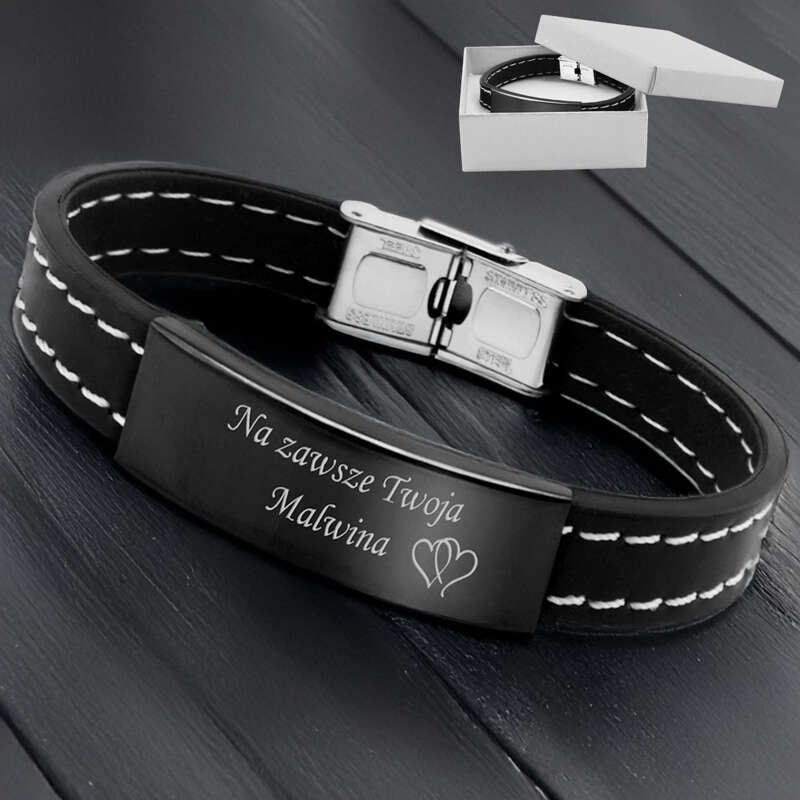 Bransoletka ze stali szlachetnej i kauczuku Prezent z Grawerem