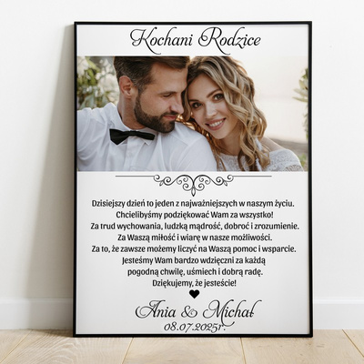 Plakat w ramce / Podziękowania dla rodziców / Własne zdjęcie / Czarna ramka 30x40 / Plexi / Podziękowanie na ślub