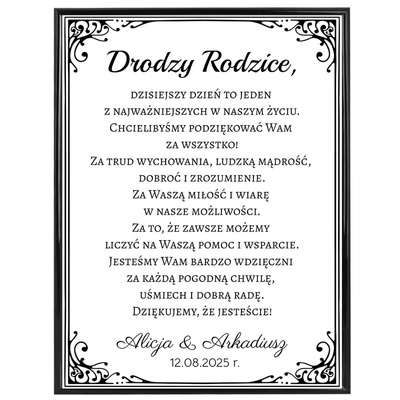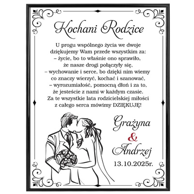 Plakat w ramce / Podziękowania dla rodziców / Para młoda / Czarna ramka 30x40 / Plexi / Podziękowanie na ślub