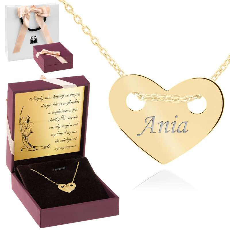 Pozłacany naszyjnik serce pr.925 z grawerem, pudełko i torebka