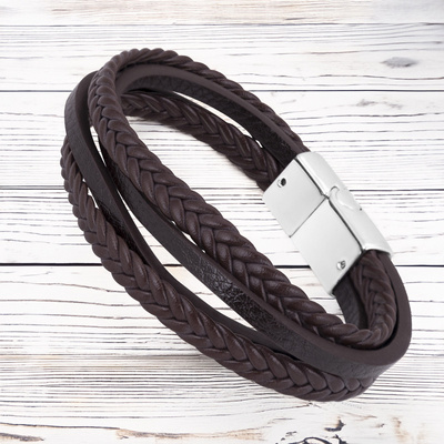 Bransoletka pleciona męska z ekoskóry, grawer na urodziny w brązie