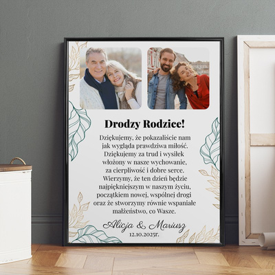 Plakat w ramce / Podziękowania dla rodziców / Własne zdjęcia / Czarna ramka 30x40 / Szkło / Plakat podziękowanie
