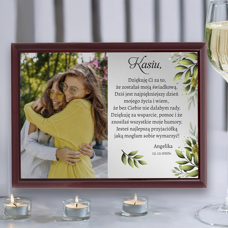 Podziękowania dla świadków / Drewniany panel, srebrna tabliczka, dedykacja