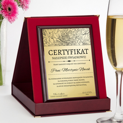 Podziękowania dla świadków / Drewniany panel, złota tabliczka, etui, dedykacja