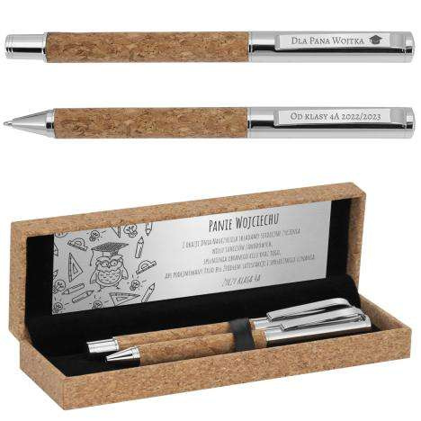 Zestaw piśmienny długopis + pióro kulkowe korkowane Dedykacja