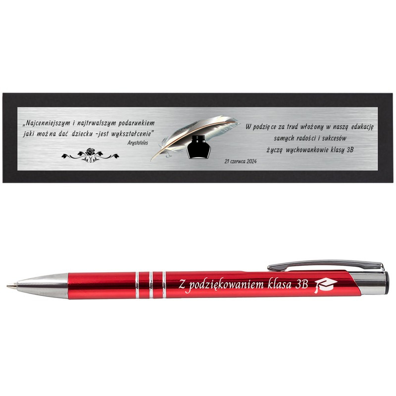 Długopis reklamowy / metalowy / Czerwony ze srebrnymi wykończeniami / Dedykacja / Grawer / Twoje Logo