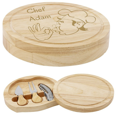 Bambusowa okrągła deska do sera ze schowkiem i akcesoriami Grawer