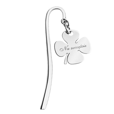 Srebrna zakładka do książki pr. 925 koniczynka "Na szczęście" z Dedykacją